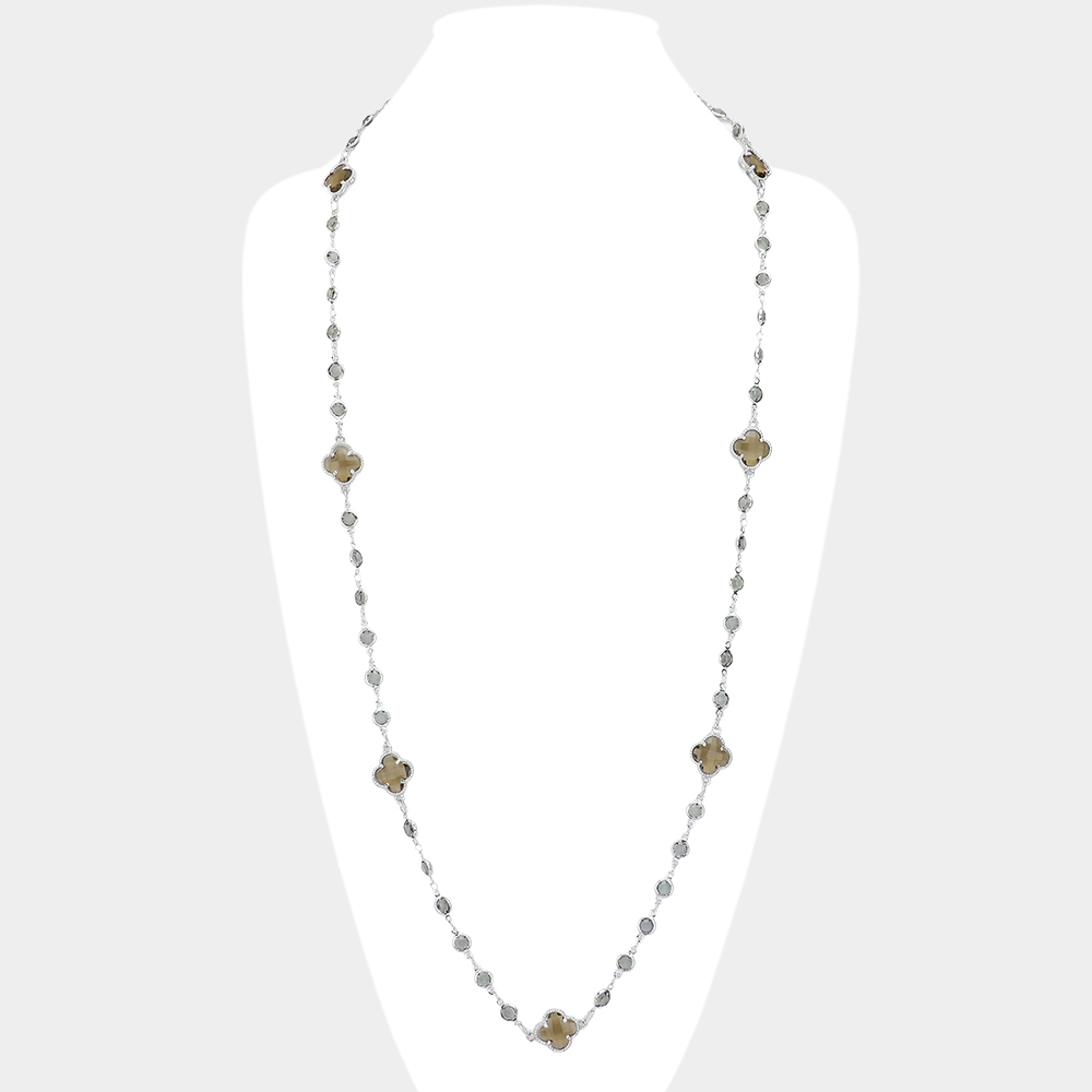 Gold Dipped Mother Of Pearl Quatrefoil Station Bracelet