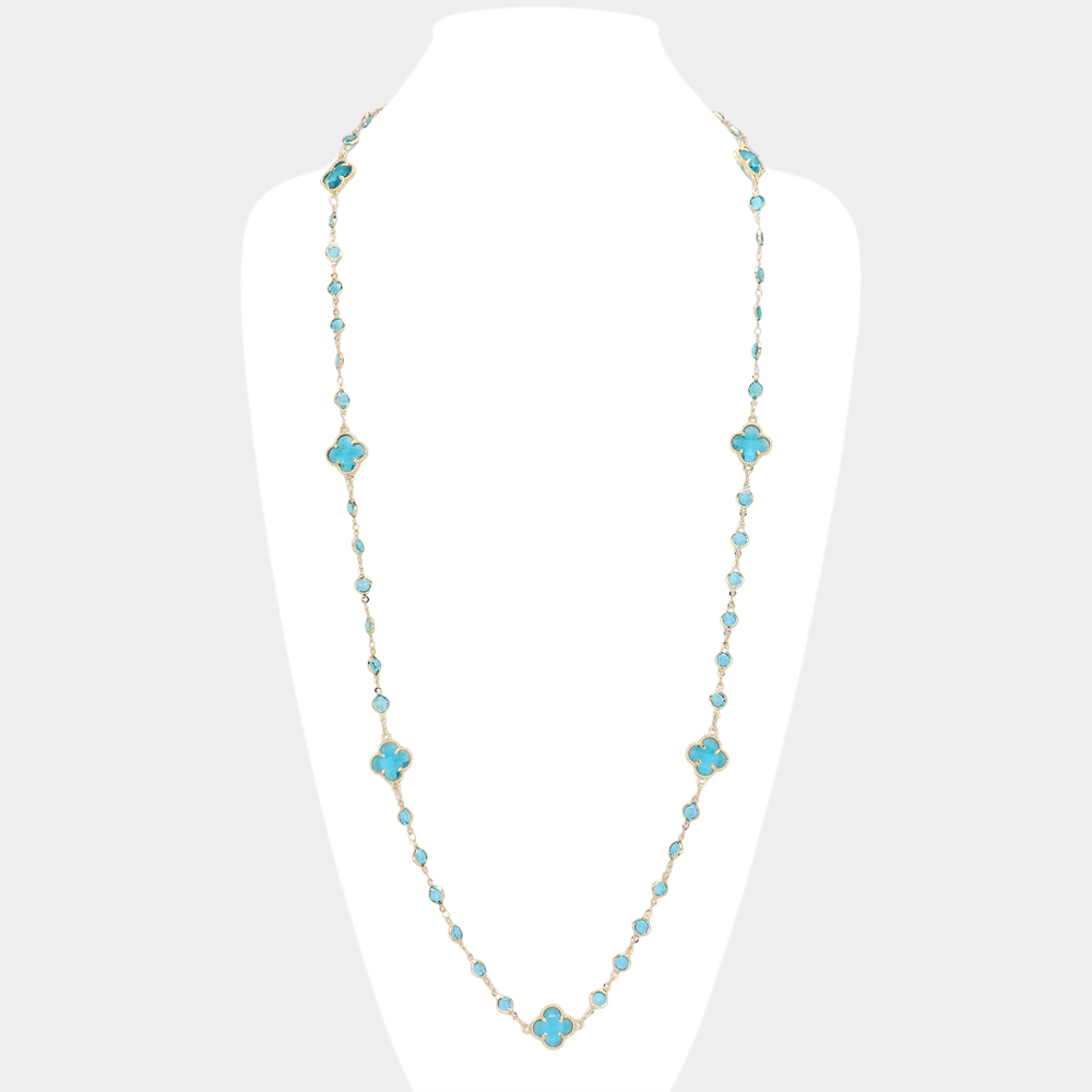 White Gold Dipped Mother Of Pearl Quatrefoil Link Necklace