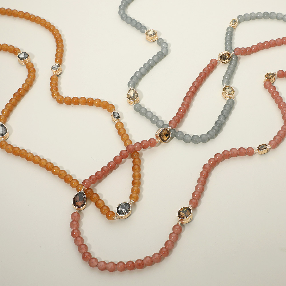 Stone Cluster Station Beaded Long Necklace Stone Cluster Station Beaded Long Necklace Stone Cluster Station Beaded Long Necklace