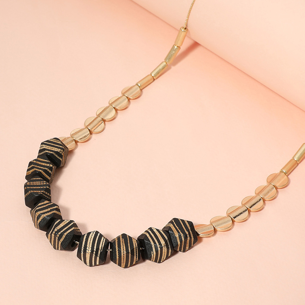 Resin Ball Accented Wood Beaded Adjustable Bracelet