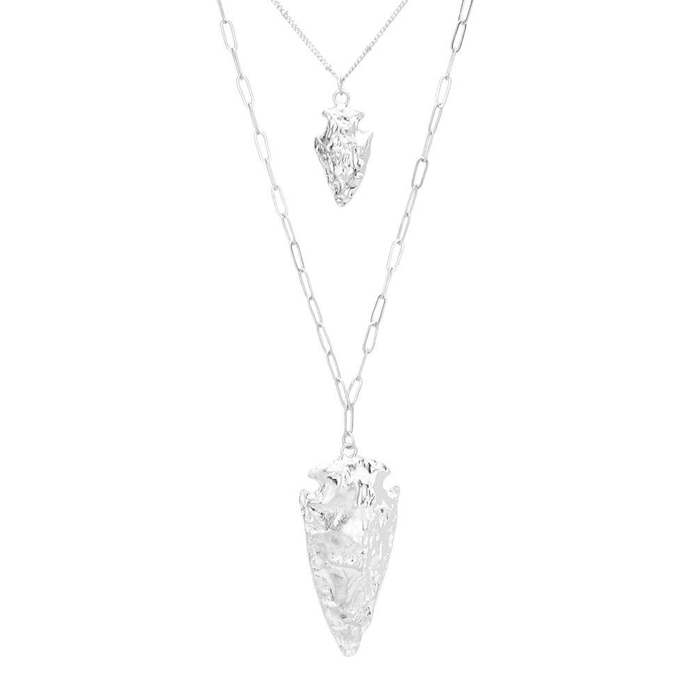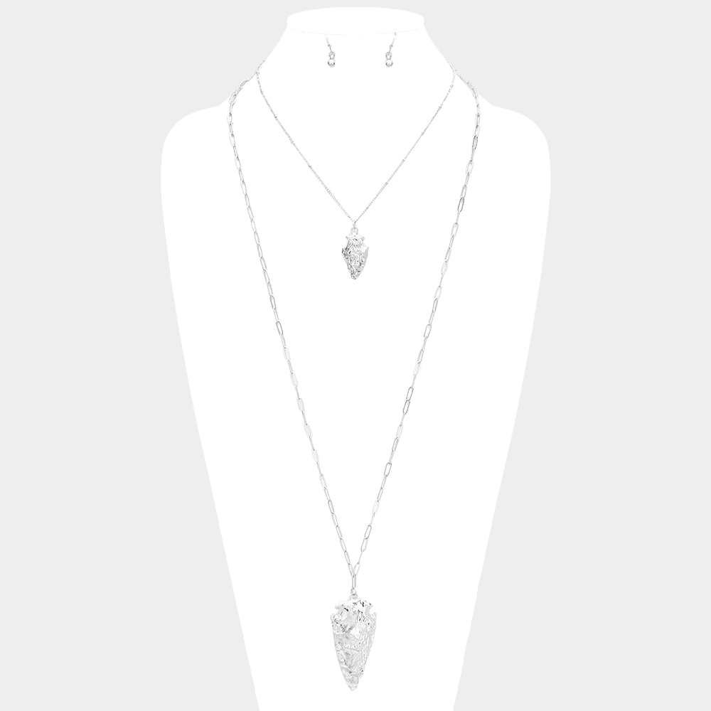 Hammered Metal Abstract Pendant Chain Long Necklace