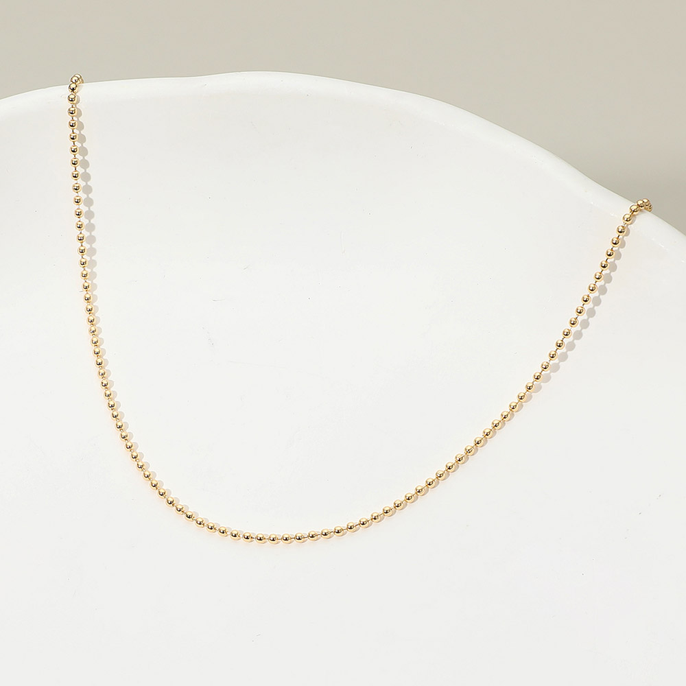 • Elegant bead chain necklace featuring small, polished round links that create a smooth and refined texture. A timeless minimalist piece perfect for layering or wearing solo, adding effortless shine to both casual and dressy looks.