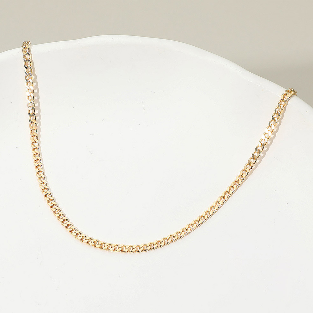 • Elegant curb chain necklace showcasing a smooth, reflective finish and uniform linked pattern. Its classic yet modern appeal makes it perfect for layering or wearing solo, offering effortless sophistication for any style or occasion.