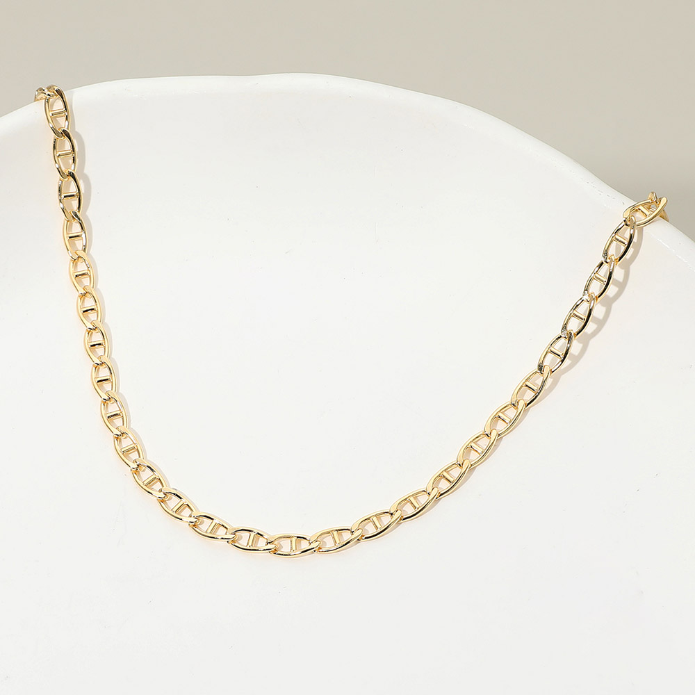 Details • Necklace Size : 18" L • Decor Size : 0.2" L (4mm) • Timeless mariner link cable chain necklace featuring smooth oval links that create a refined and versatile look. Its polished design makes it perfect for layering or wearing solo, adding a touch of understated sophistication to any outfit. • Gold Filled • Lead and Nickel Compliant • Made In Brazil