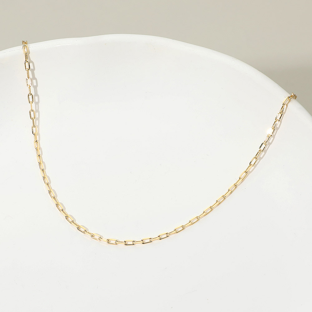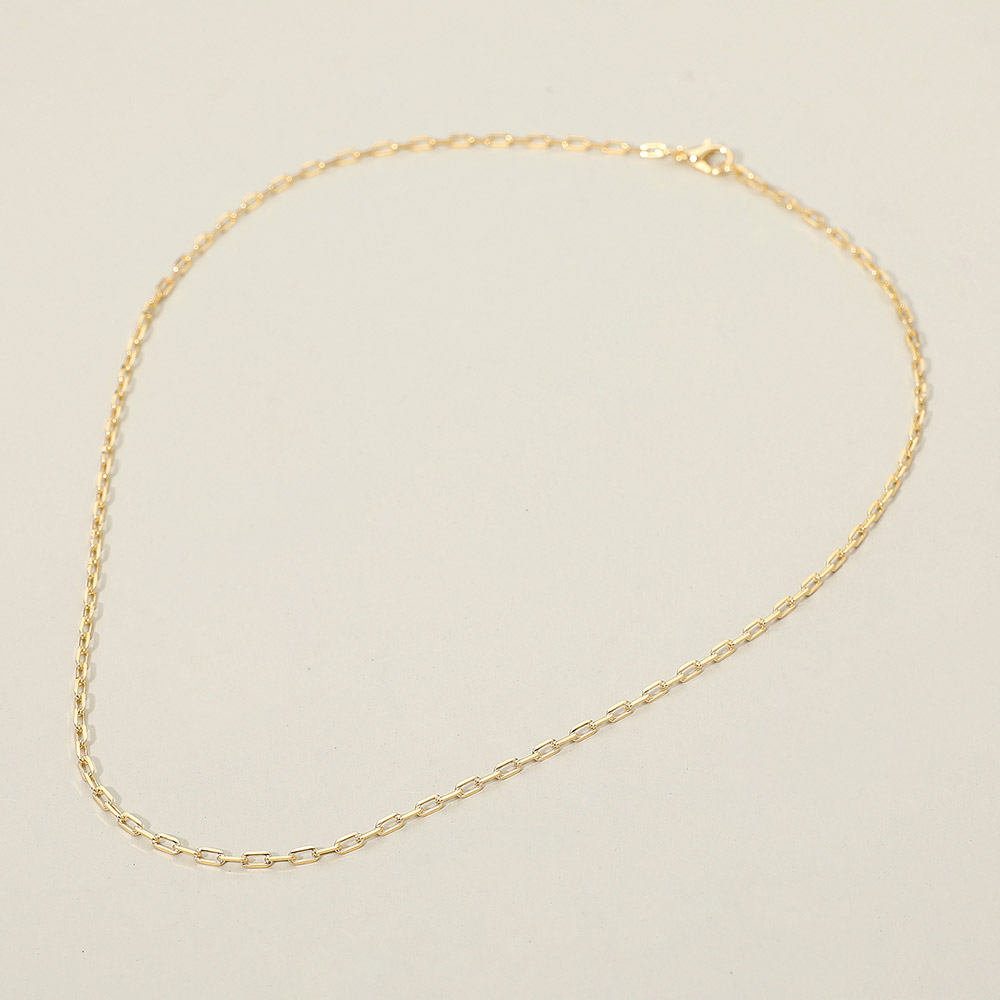 Details • Necklace Size : 18" L • Decor Size : 0.1" L (2mm) • Contemporary oval paperclip chain necklace featuring elongated links for a sleek, modern look. Lightweight yet bold, this versatile accessory transitions effortlessly from casual to formal, adding sophistication to any layered or standalone style. • Gold Filled • Lead and Nickel Compliant • Made In Brazil