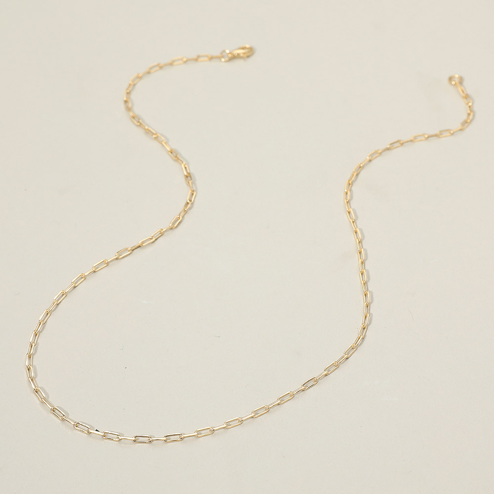 Details • Necklace Size : 18" L • Decor Size : 0.1" L (2mm) • Sleek paperclip chain necklace designed with a refined geometric pattern. Its lightweight structure and polished finish add a touch of modern sophistication, perfect for everyday wear or layering with other necklaces for a chic, contemporary look. • Gold Filled • Lead and Nickel Compliant • Made In Brazil