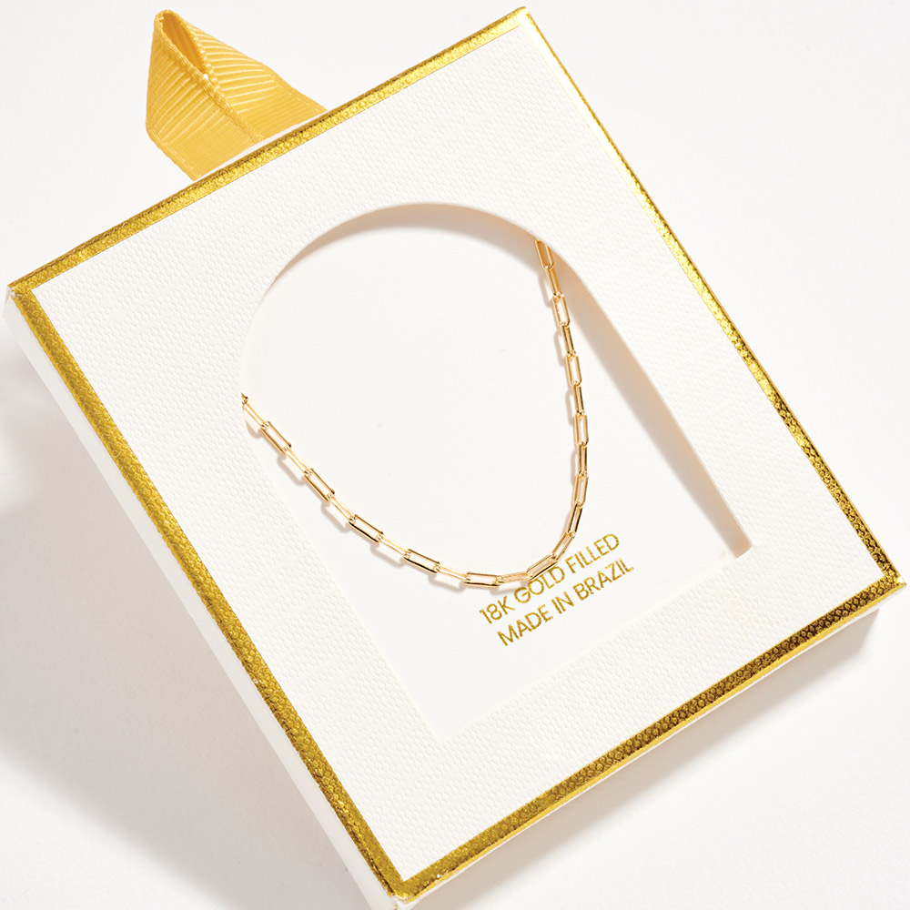 Details • Necklace Size : 15.5" + 1.75" L • Decor Size : 0.1" L • Sleek link chain bracelet designed with a modern, clean silhouette for effortless everyday styling. Perfect for wearing alone or layering with other bracelets. A versatile accessory that adds subtle polish, making it ideal for daily outfits, gifting, or minimalist jewelry collections. • Gold Filled • Hypoallergenic • Lead and Nickel Compliant • Made In Brazil