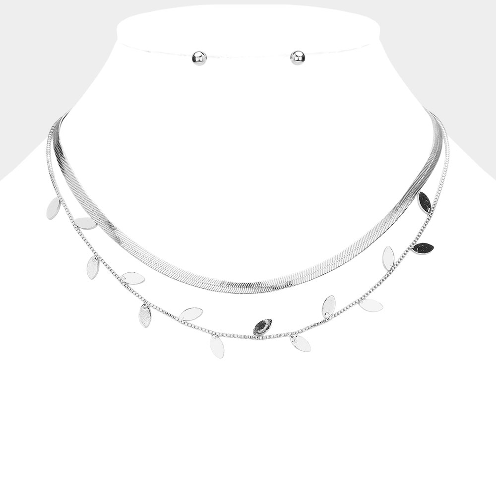 2PCS - Metal Leaf Station Snake Chain Necklace