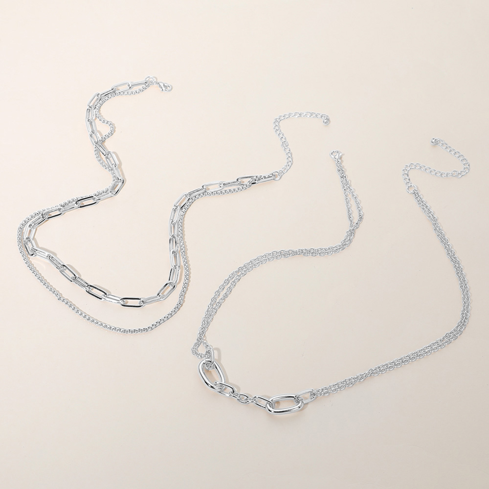 2PCS - Metal Link Paperclip Chain Layered Necklace