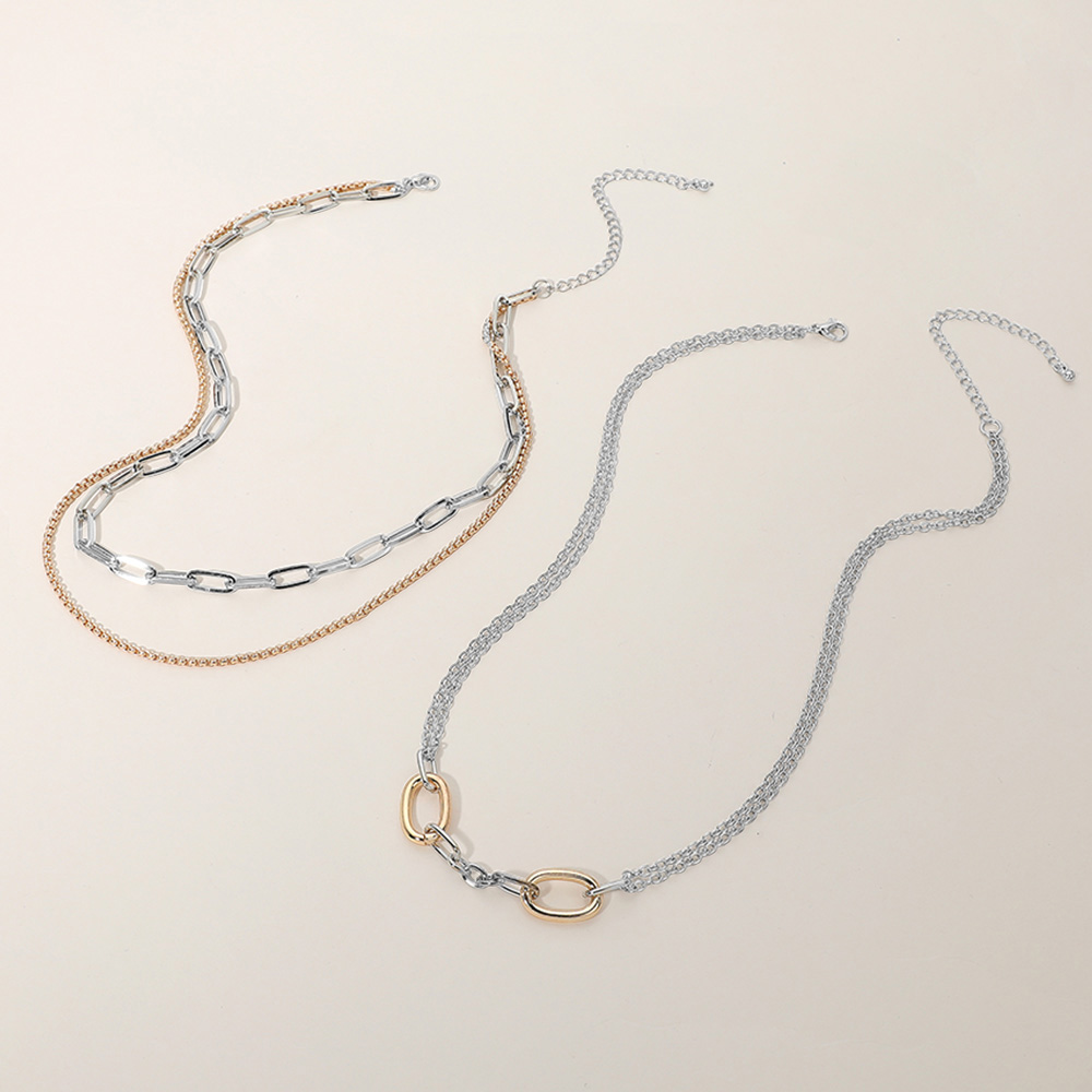 2PCS - Metal Link Paperclip Chain Layered Necklace