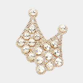 Sterling Silver Post Rhinestone Studded Chunky Oval Hoop Earrings