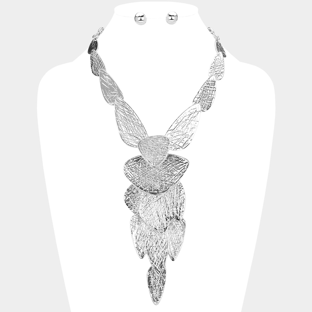 Pearl Rhinestone Paved Vine Teardrop Stone Cluster Link Evening Necklace