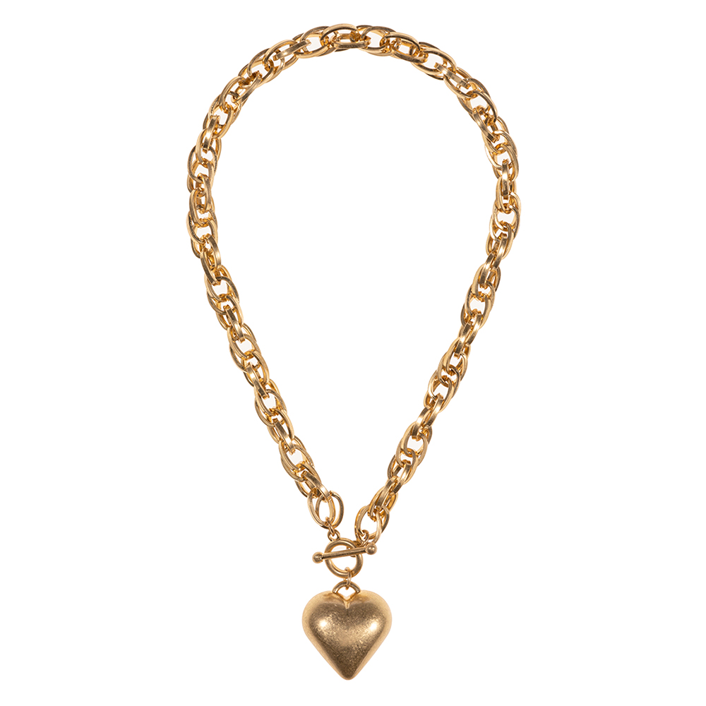 Brushed Metal Puffy Heart Pendant Chunky Toggle Necklace