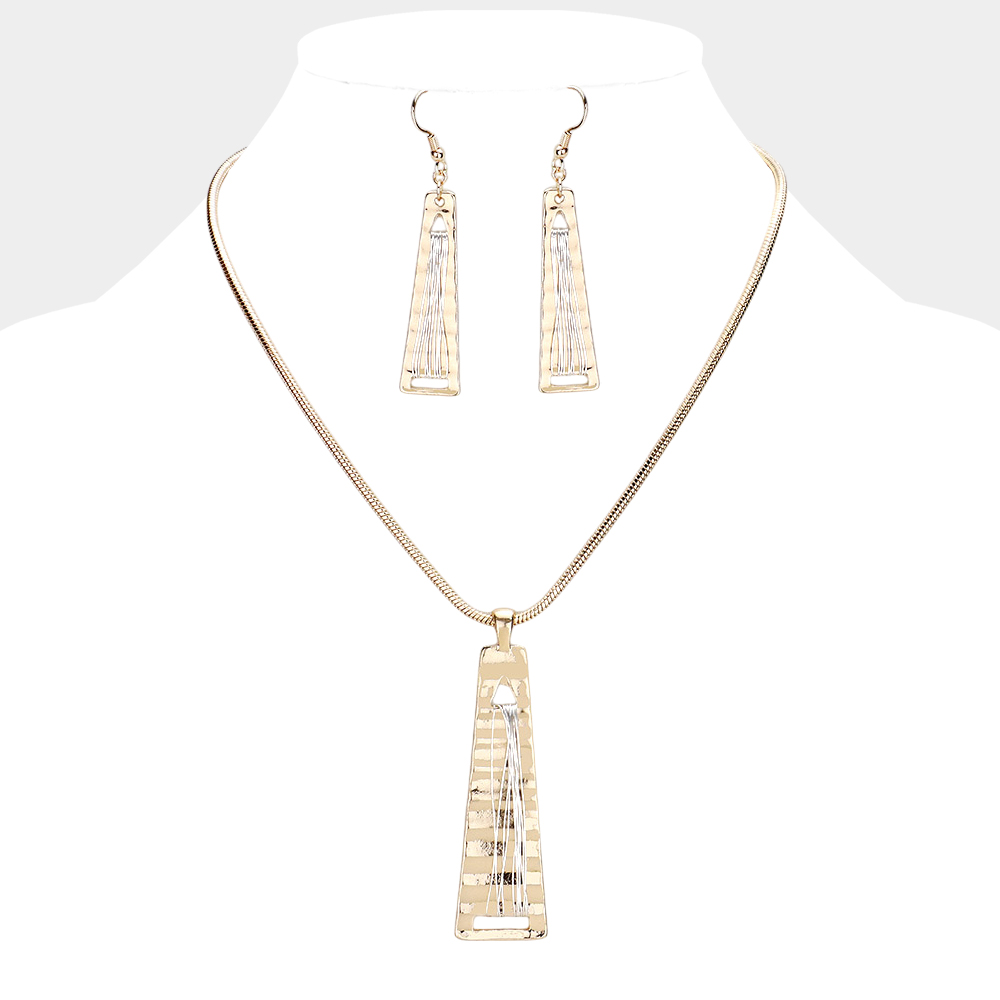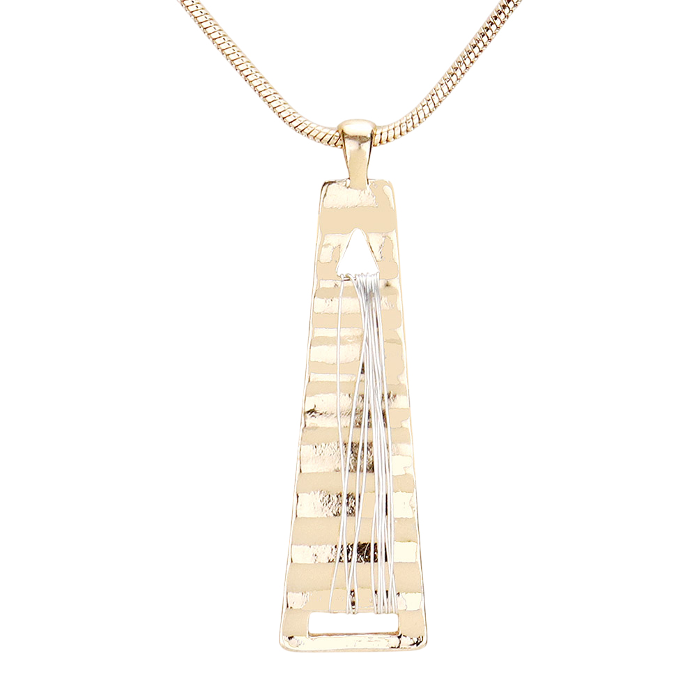 Coil Wire Textured Metal Pendant Drop Necklace