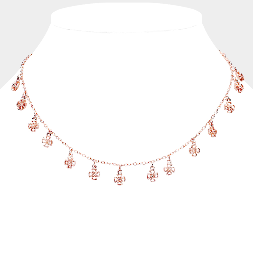 Cross Charm Metal Pearl Beaded Multi Layered Necklace