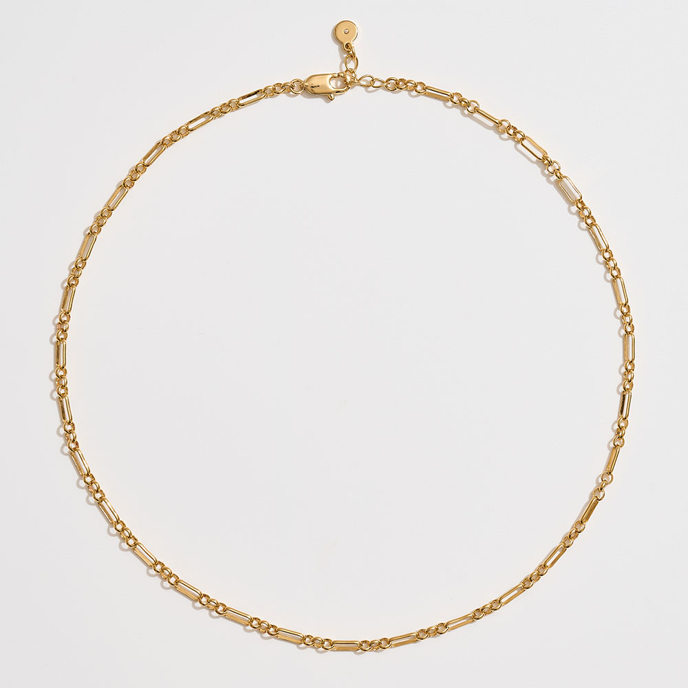 Details • Necklace Size : 16" + 1" L • Decor Size : 0.2" L • Add a touch of sophistication with this beaded link chain necklace. Designed with alternating smooth and textured links, it offers timeless appeal and versatile styling. Lightweight and durable, this piece is perfect for layering or wearing solo for a refined statement. • Hypoallergenic • Made In Korea • Gold Dipped • Brass