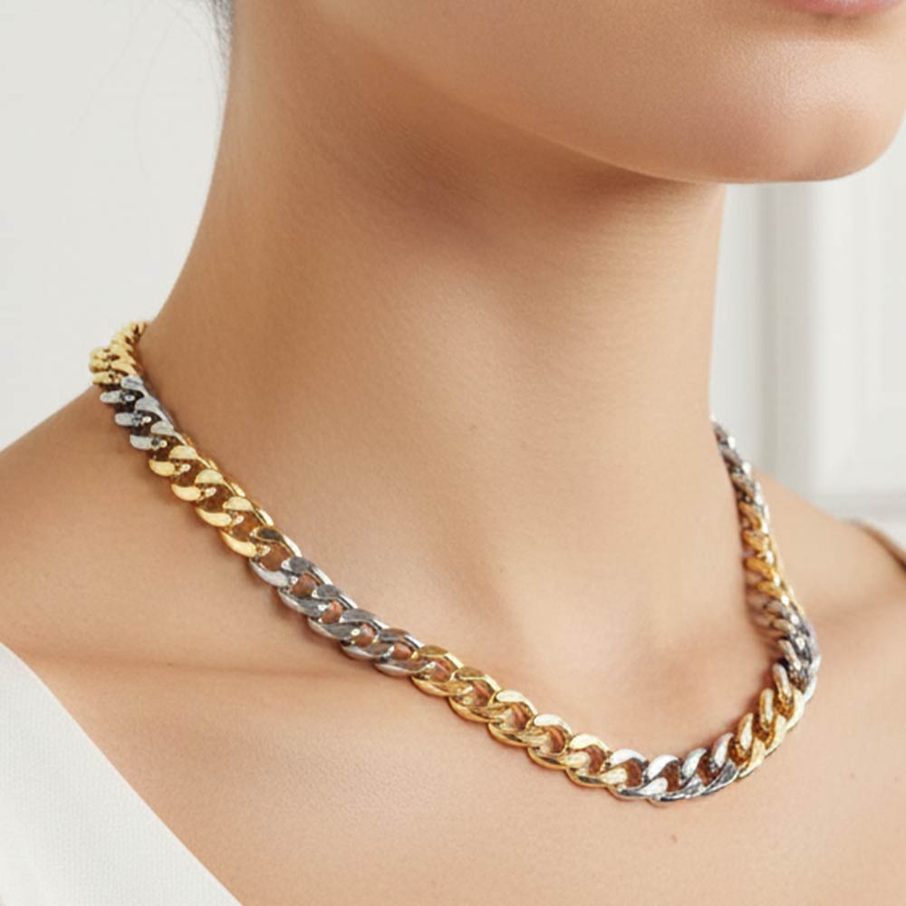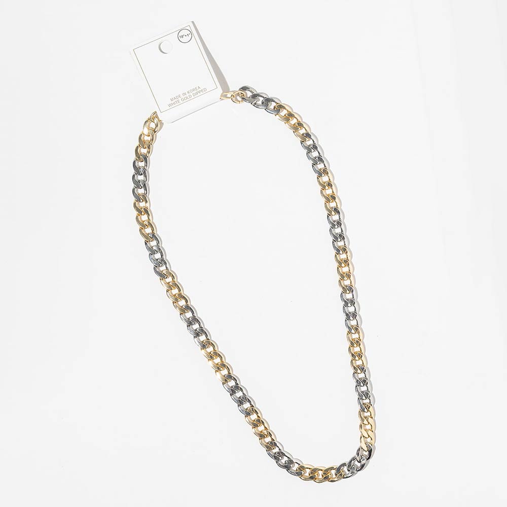 Details • Necklace Size : 18" + 1" L • Decor Size : 0.3" L • This statement chain necklace features oversized interlocking links designed to sit smoothly along the neckline for a confident, modern look. Perfect for layering or wearing solo, it adds instant impact to everyday outfits, fashion-forward edits, and trend-driven jewelry collections. • Gold Dipped • Lead and Nickel Compliant • Made In Korea