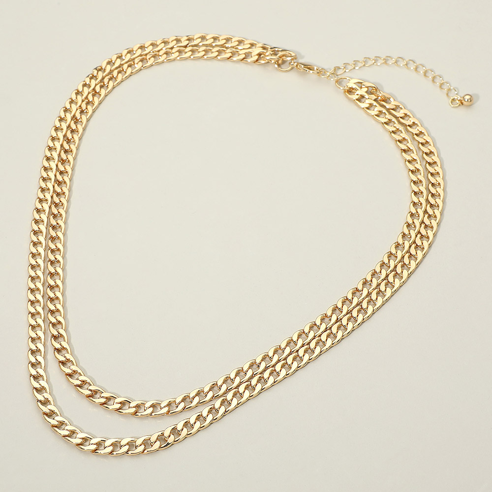 Details • Necklace Size : 19" + 3" L • Decor Size : 1.75" L • This double layer chunky chain necklace delivers bold impact with a modern stacked silhouette designed to elevate everyday styling. Featuring smooth, oversized links arranged in two balanced layers, it creates instant depth and dimension without extra effort. Ideal for statement wear or pairing with pendants, this versatile piece offers boutiques a fashion-forward accessory that transitions easily from casual looks to elevated outfits. • Lead and Nickel Compliant • Gold Dipped