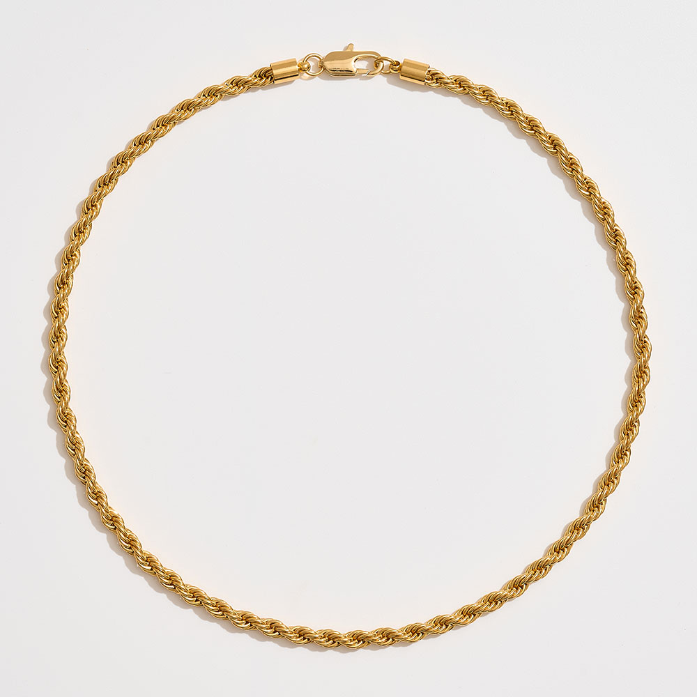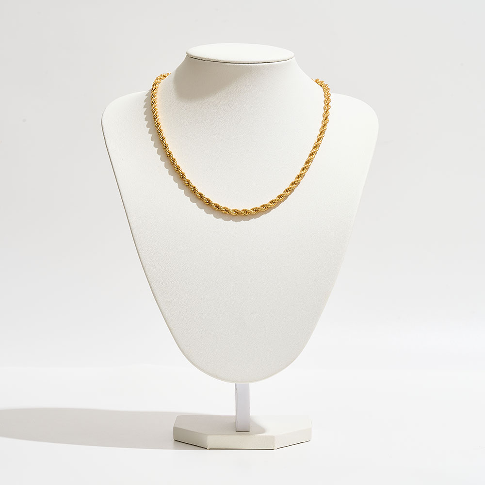 • This rope chain necklace brings timeless style with its textured interwoven design, crafted in brass for durability and shine. Perfect for layering or as a bold solo accessory, it adds sophistication to everyday looks and makes a standout statement for any occasion.
