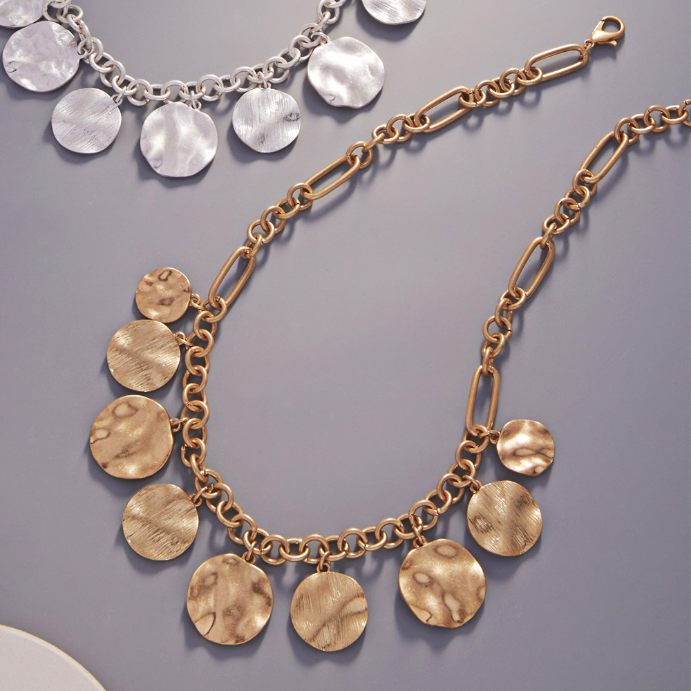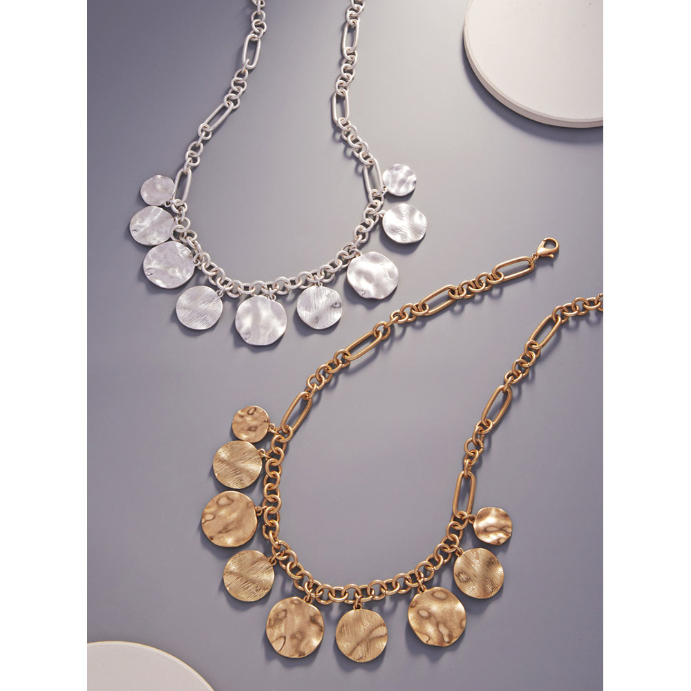 Hammered Metal Disc Necklace