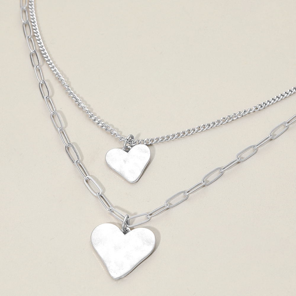 Details • Necklace Size : 16" + 3" L • Decor Size : 2.25" L • Pendant Size : 0.8" X 0.8" • Chic layered necklace featuring dual heart pendants for effortless statement styling. Perfect for casual outfits, date nights, or special occasions, it adds dimension and charm to any look while offering a versatile accessory ideal for gifting or daily wear. • Lead and Nickel Compliant