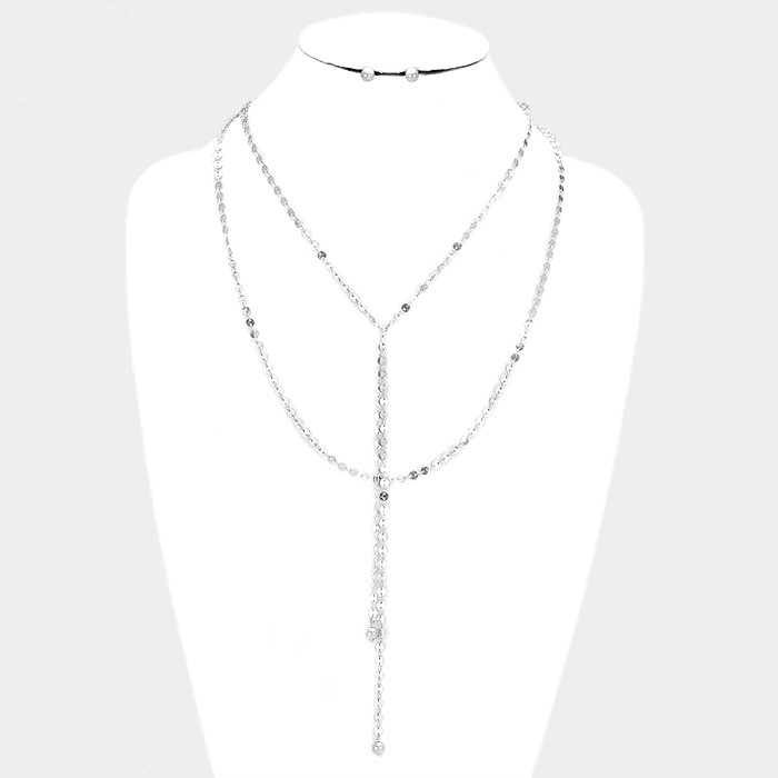 Layered Metal Disc Chain Y Shaped Necklace
