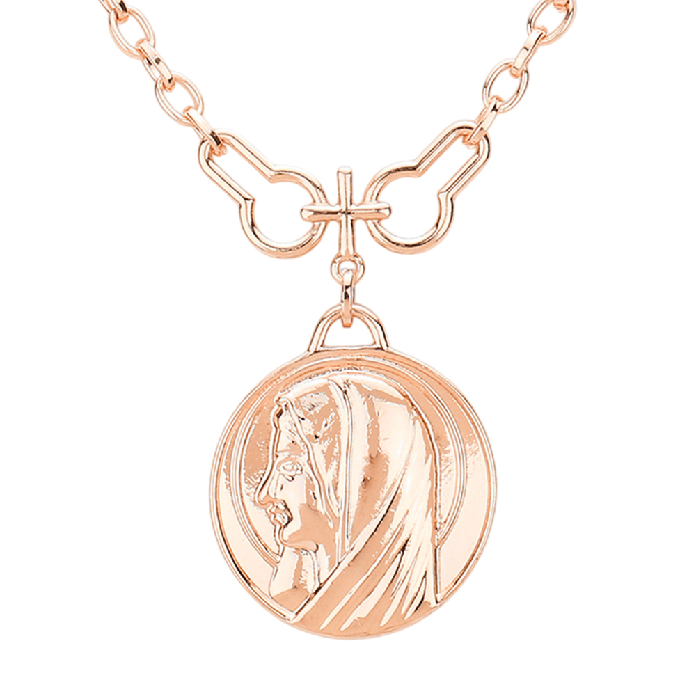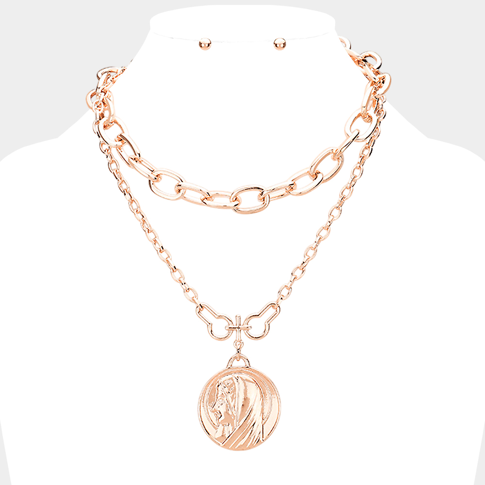 Layered Saint Mary Metal Pendant Necklace