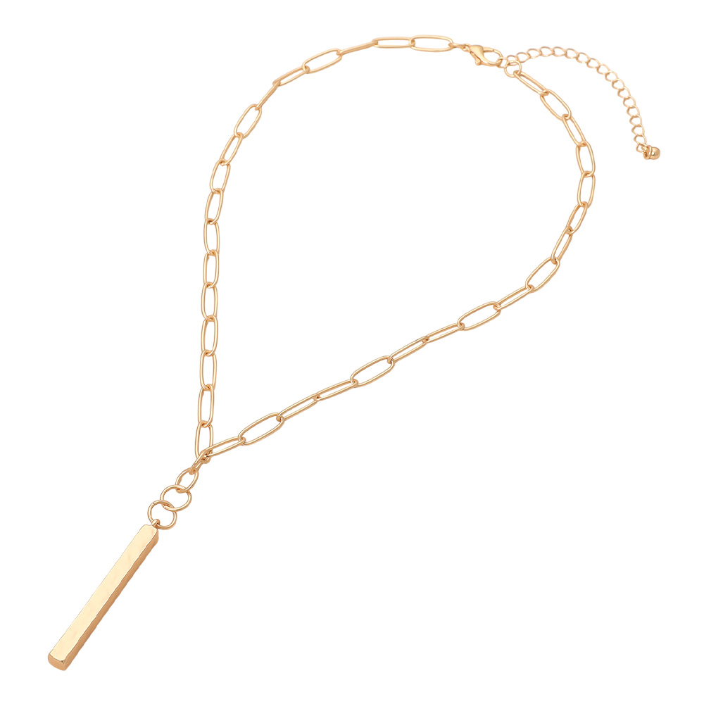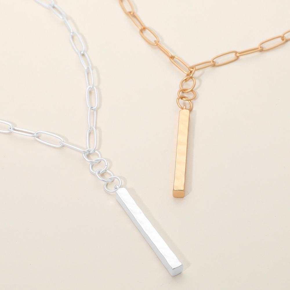Matte Metal Bar Pendant Paperclip Chain Necklace