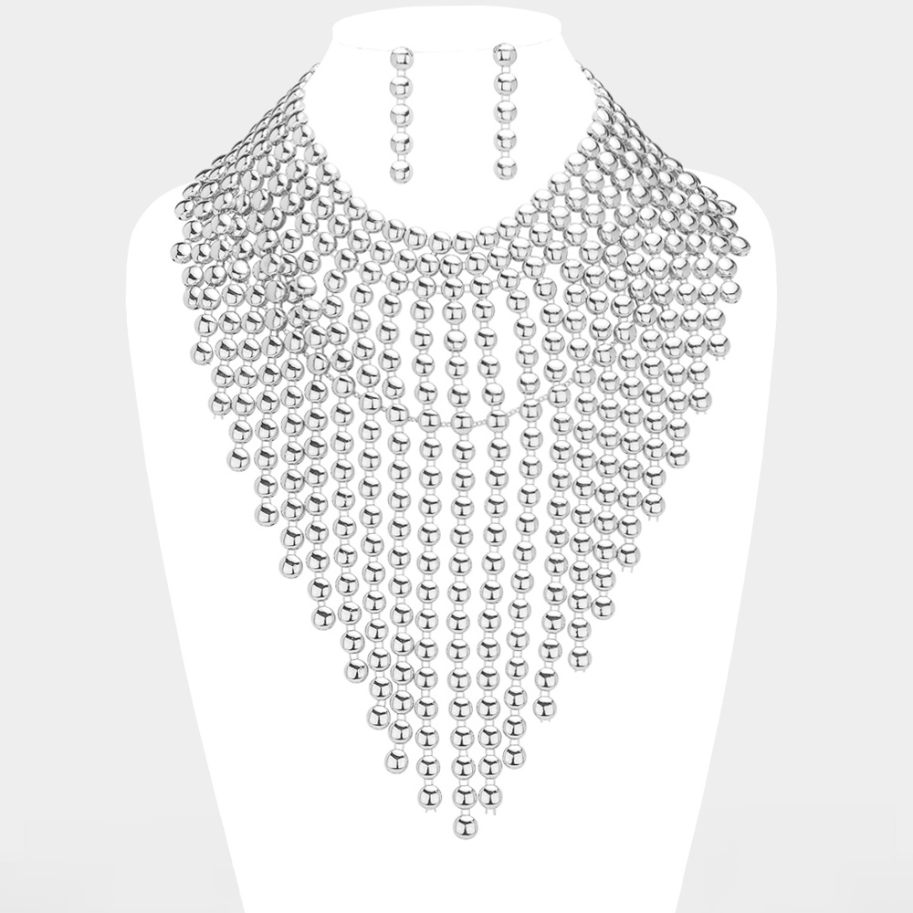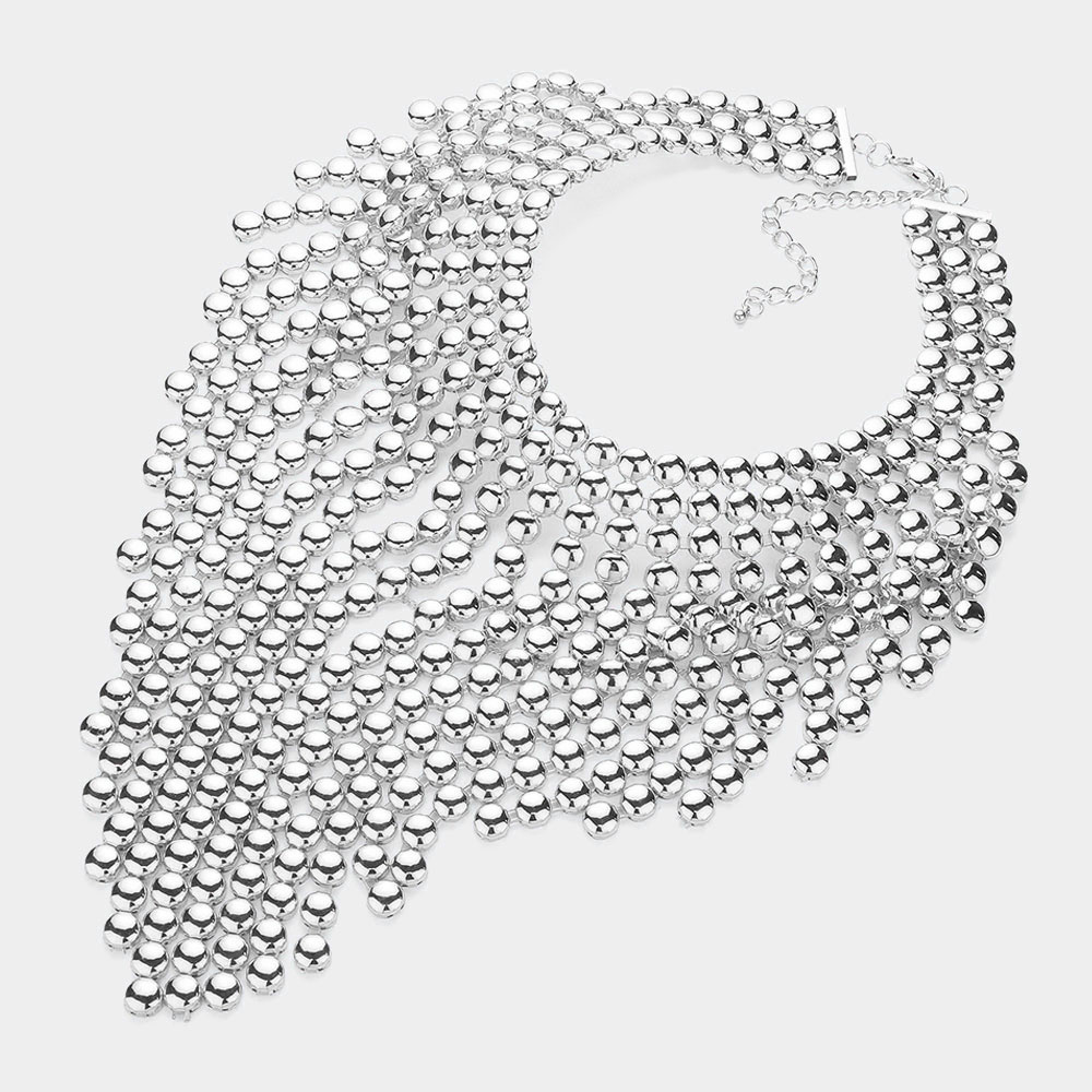 Metal Ball Fringe Collar Statement Necklace