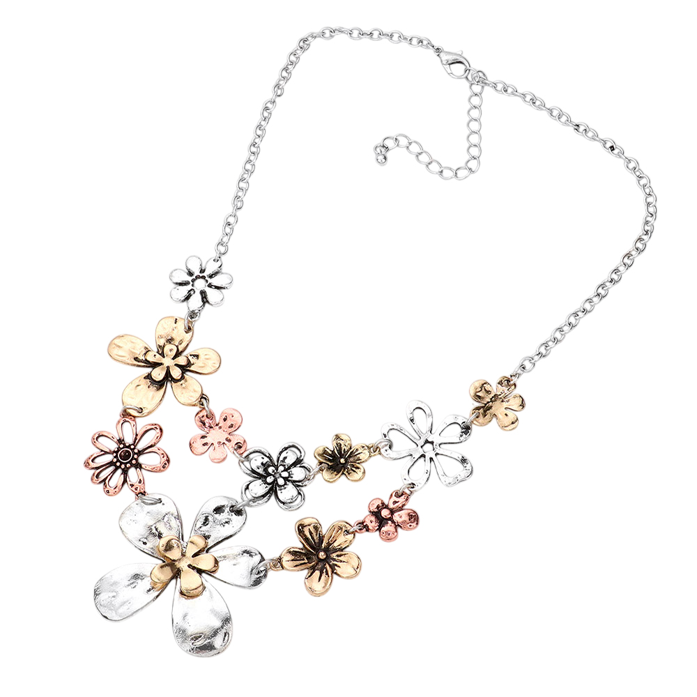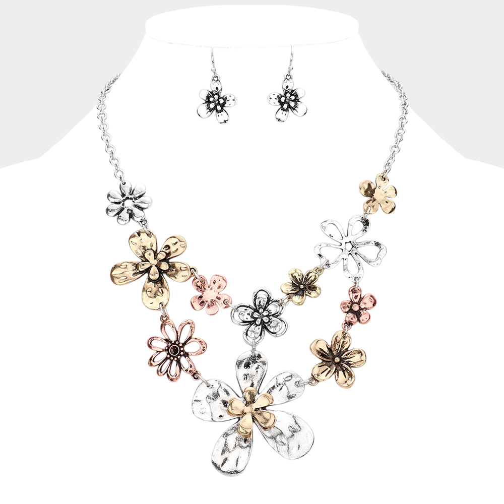 3PCS - Metal Flower Ball Beaded Stretch Multi Layered Bracelets