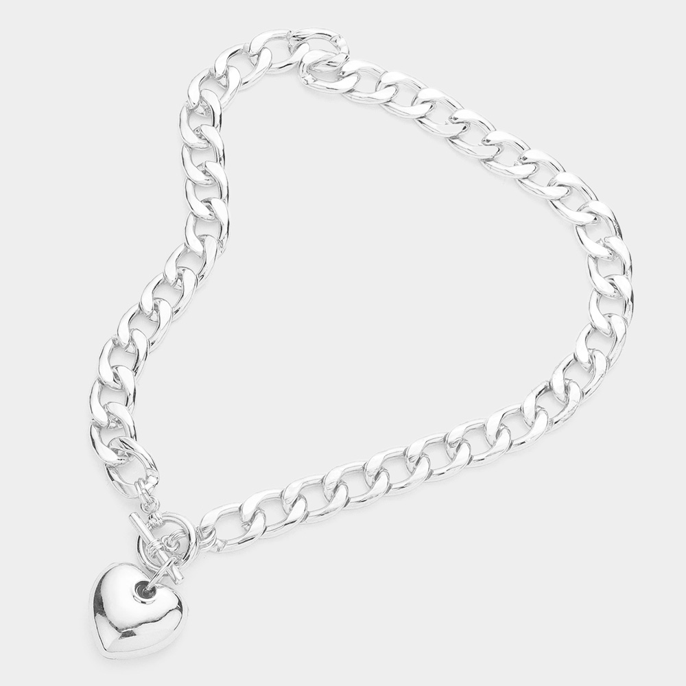Metal heart charm toggle necklace