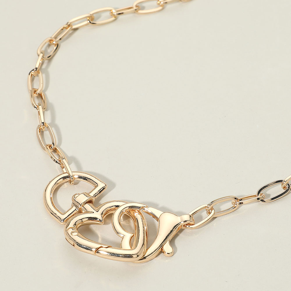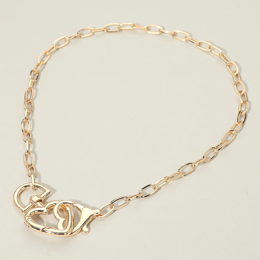 Details • Necklace Size : 17" + 1.75" L • Decor Size : 1" L • This heart link chain necklace features an elegant chain design accented by a sculptural heart-inspired clasp that doubles as a focal detail. Designed to blend modern edge with romantic appeal, it offers versatile styling for everyday wear or layered looks, making it a strong statement piece for contemporary jewelry collections. • Lead and Nickel Compliant