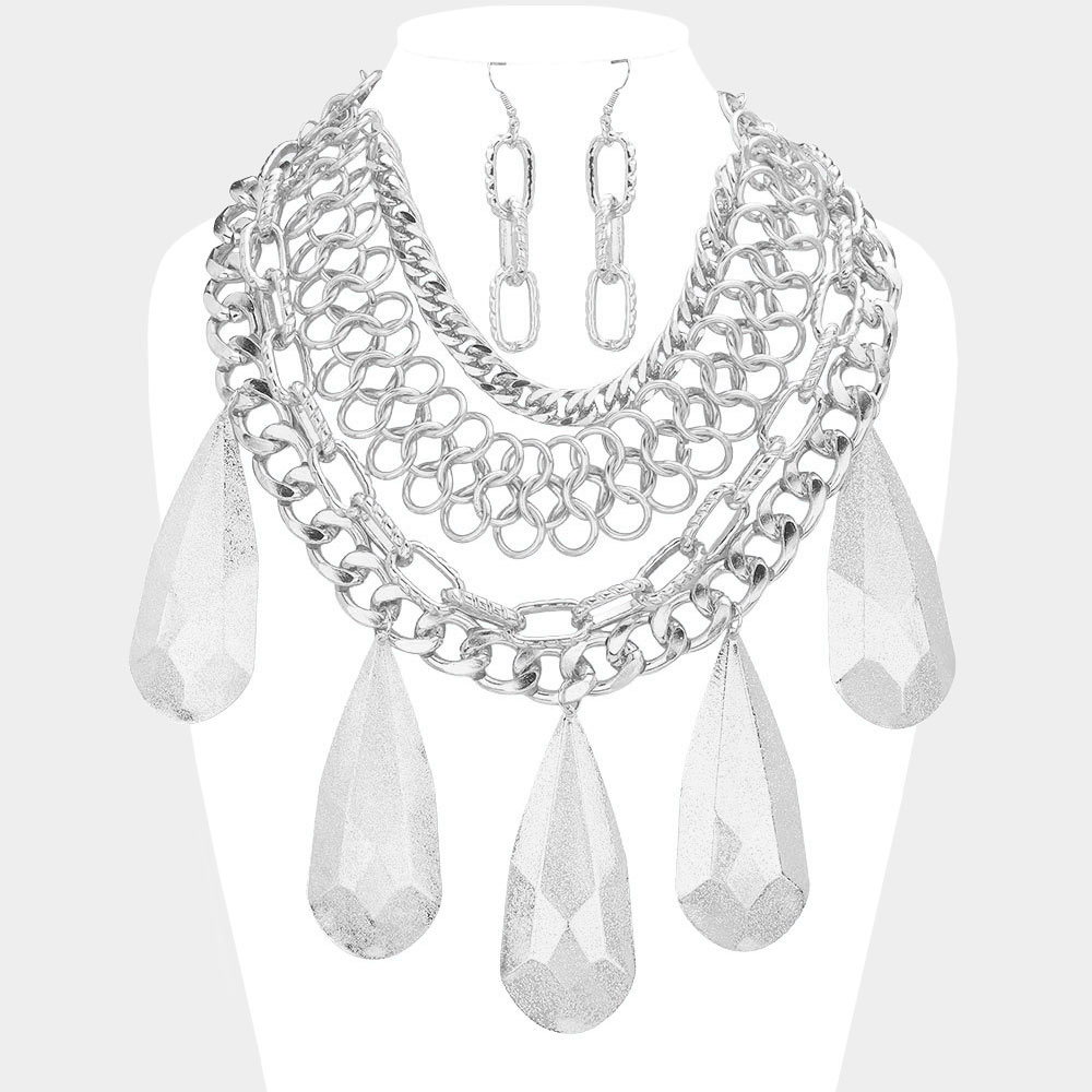 Stone Pointed Textured Metal Flower Dangle Earrings