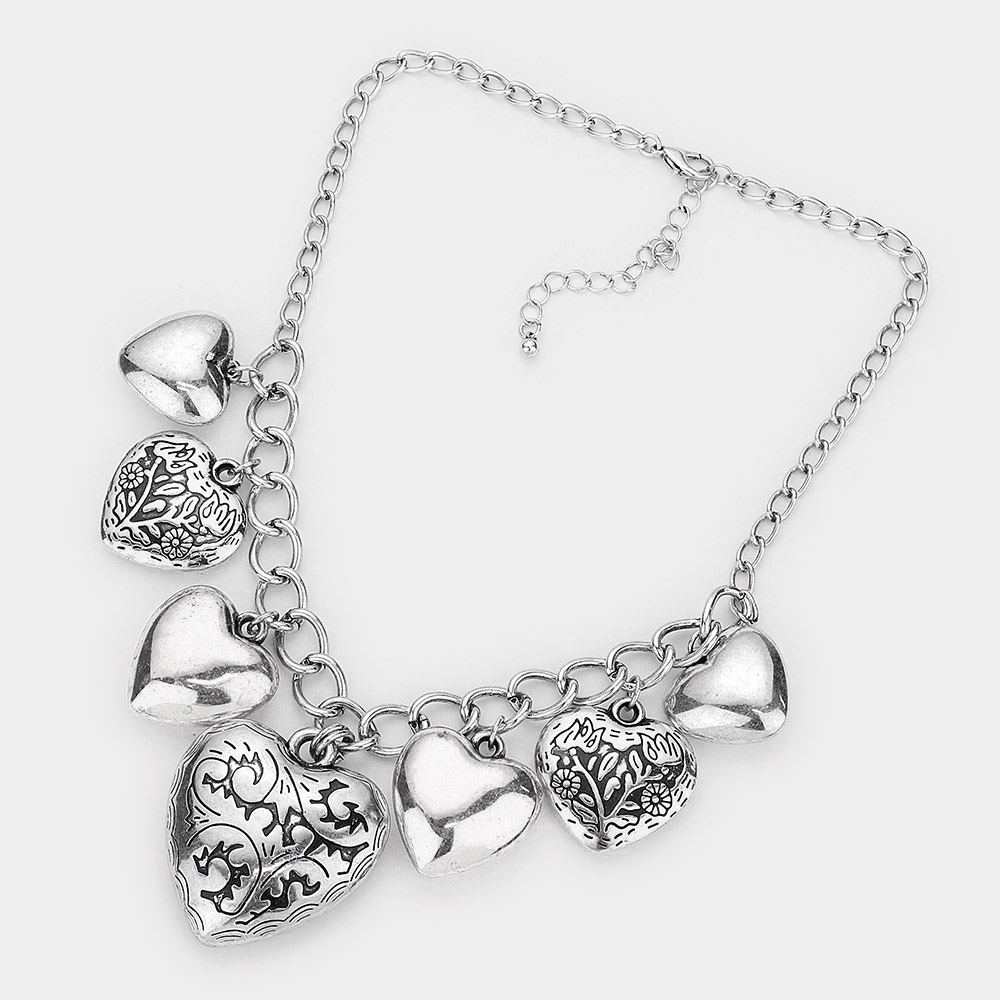 Multi Metal Heart Pendants Dangle Necklace