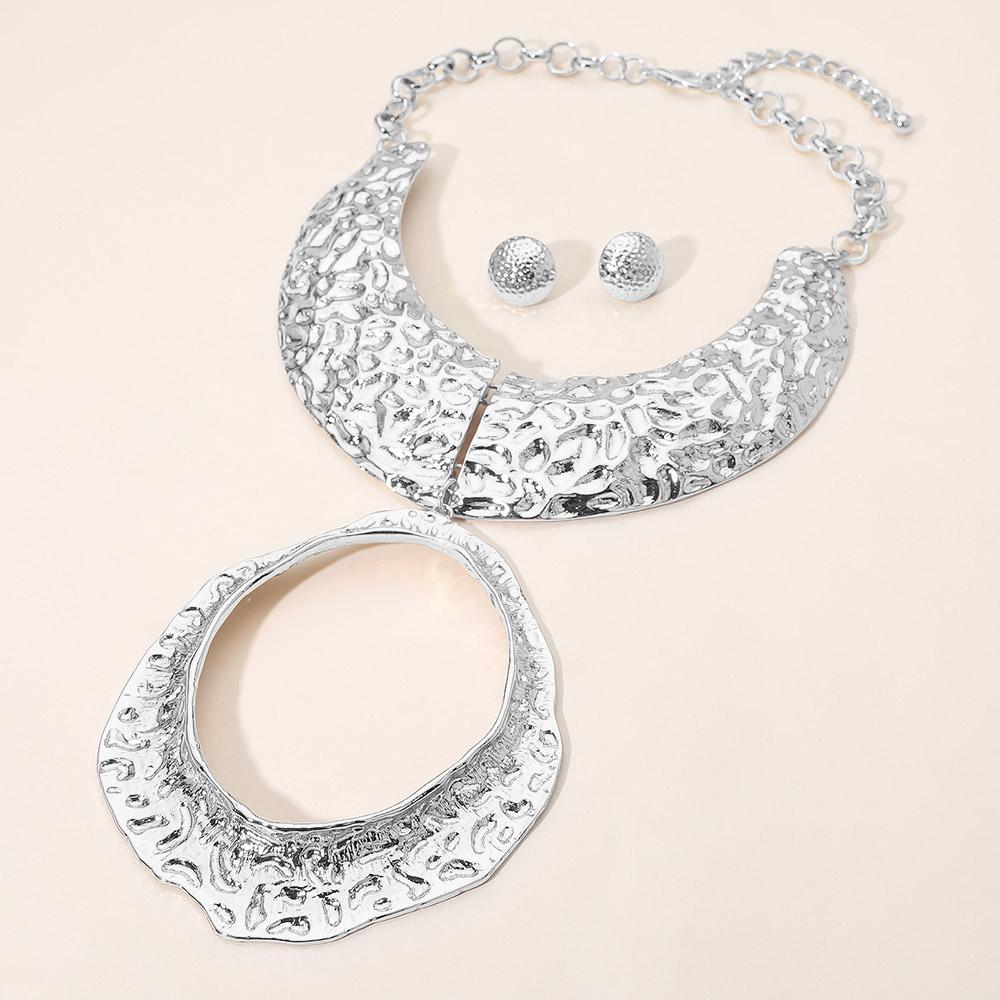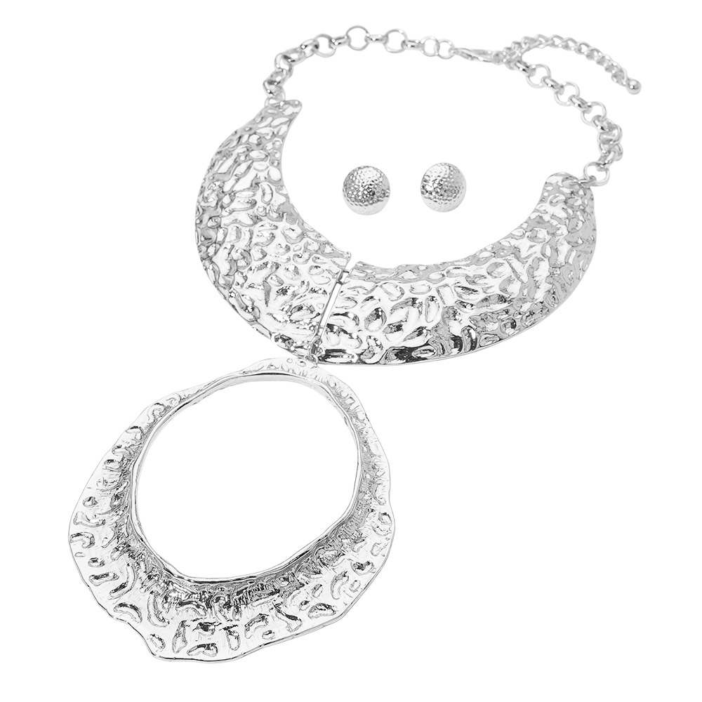 Oversized Abstract Textured Metal Open Ring Accent Statement Necklace