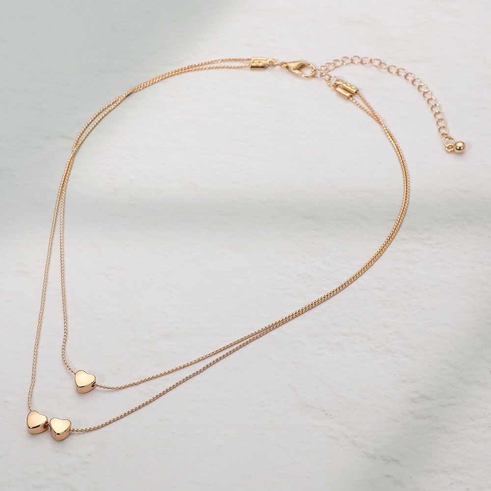 • Elegant layered heart necklace featuring dual chains with petite heart charms for a delicate, romantic look. Perfect for everyday elegance or special occasions, this dainty design adds a touch of charm and love-inspired sophistication to any outfit.