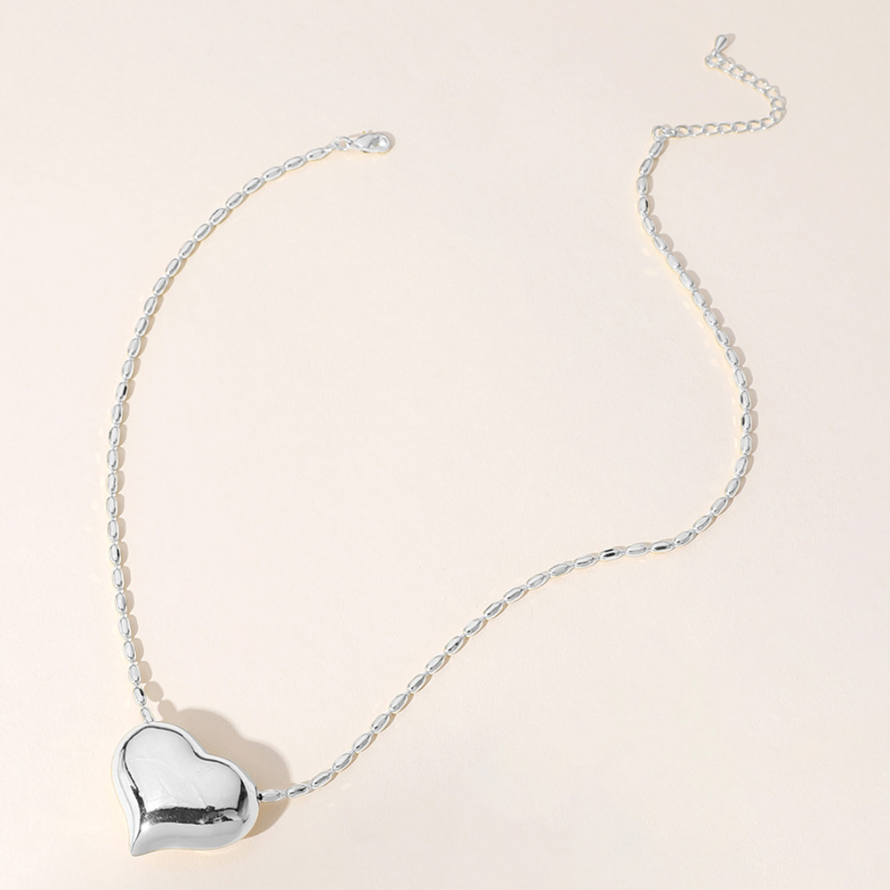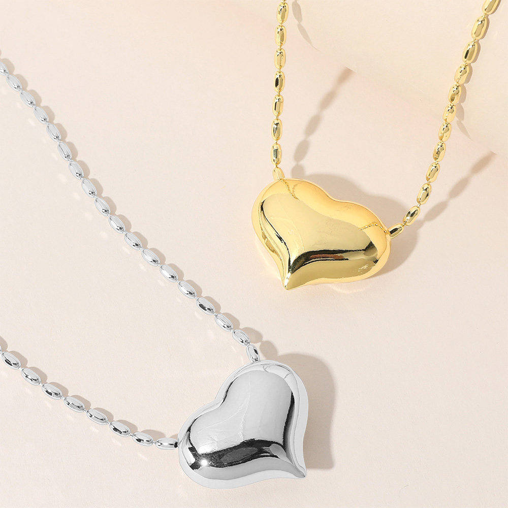 Gold Dipped Metal Chain Detailed Heart Pendant Necklace