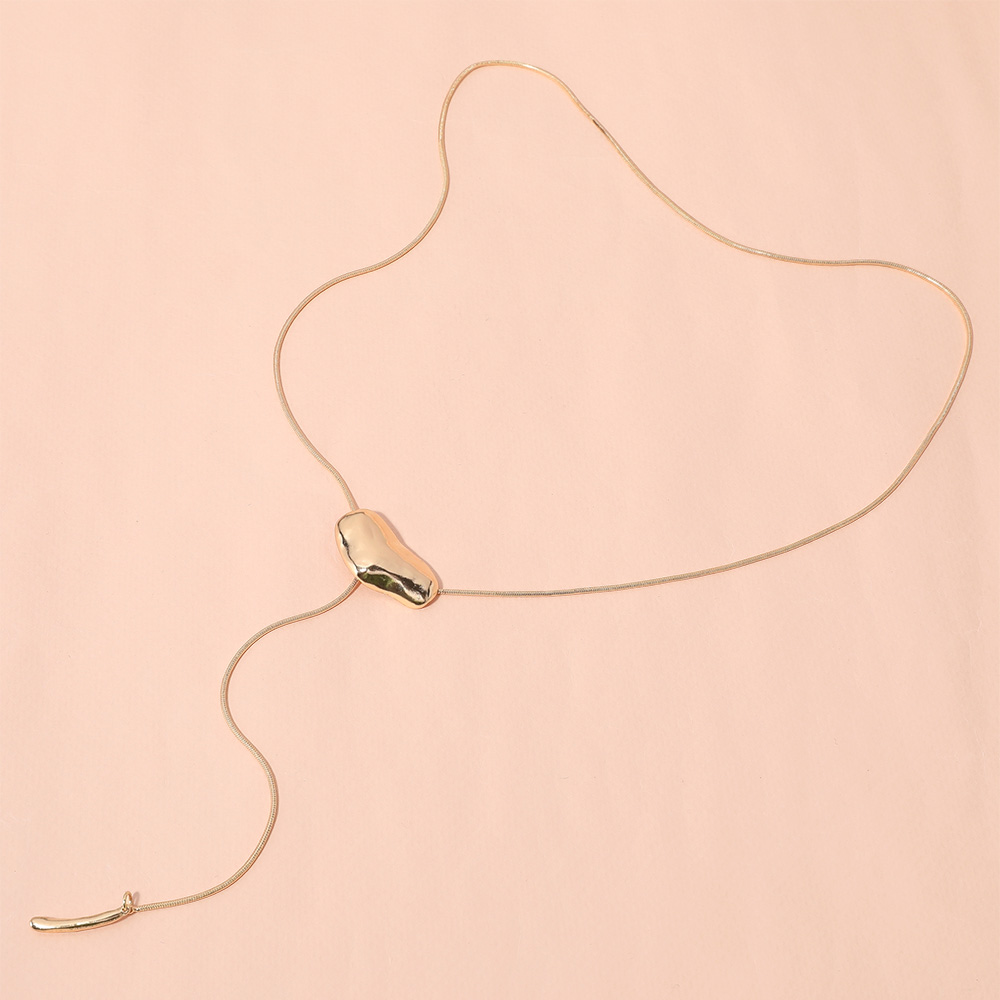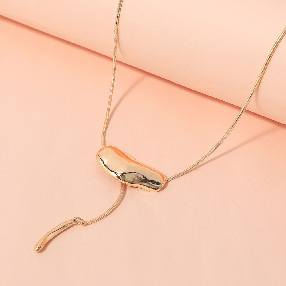 SECRET BOX_Hammered Brass Metal Bean Plate Adjustable Necklace