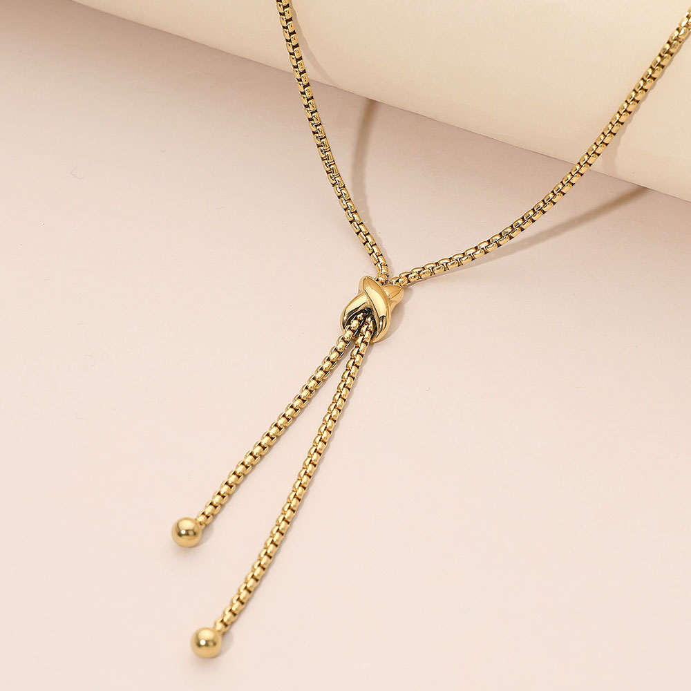 • Sleek sliding-knot necklace with a fluid Y-style drop that creates a modern, elongated silhouette. Designed for adjustable wear and versatile styling from casual looks to evening outfits, perfect as a solo statement or layered for added dimension.