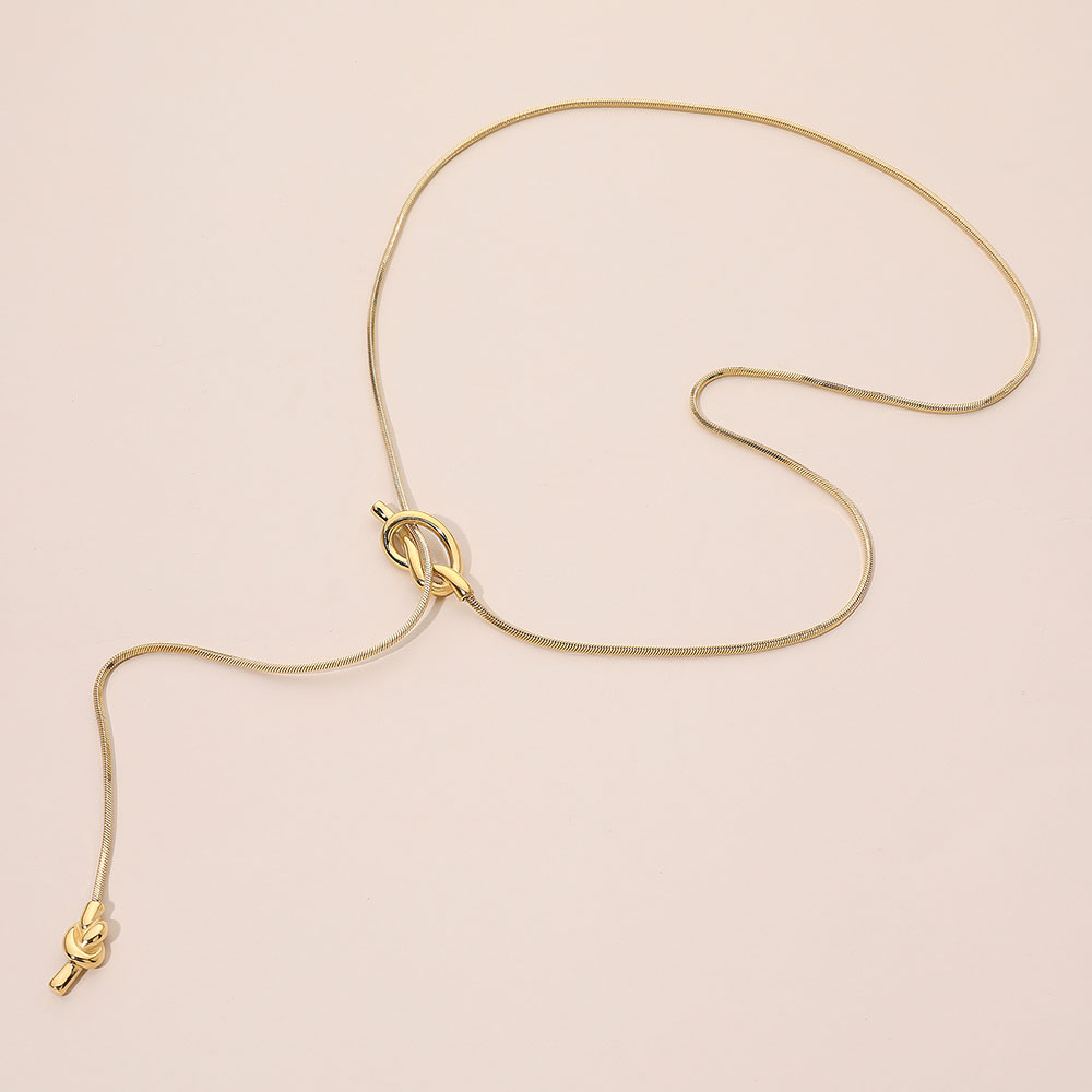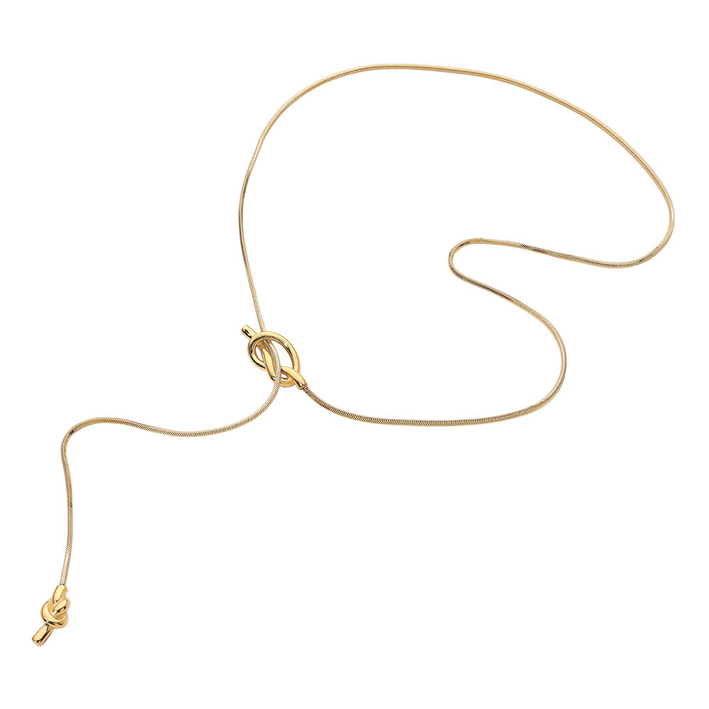 Details • Necklace Size : 33" L / Adjustable • Decor Size : 0.6" X 1.3" • Water Resistant • Sleek Y-style necklace with an adjustable sliding knot design that creates a graceful drop silhouette for versatile styling. Effortlessly transitions from casual to evening wear, highlighting necklines with modern elegance when worn solo or layered with other favorites. • Hypoallergenic • Stainless Steel