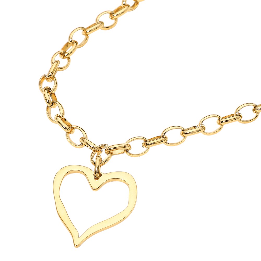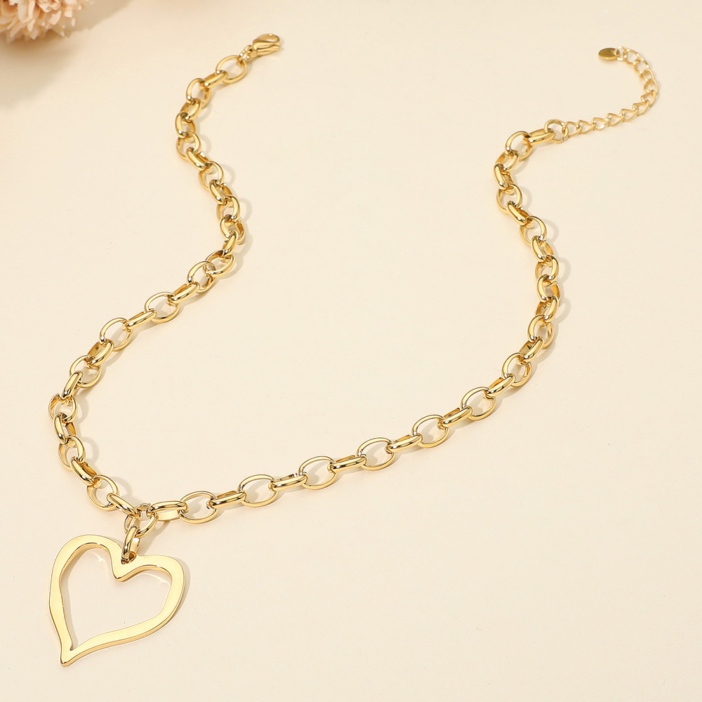 Details • Necklace Size : 17" + 2" L • Pendant Size : 1.25" X 1.5" • Water Resistant • Chic open heart pendant necklace featuring a modern chain link design. This minimal yet elegant accessory adds a romantic and stylish touch to any outfit. Perfect for layering or wearing solo, it makes a thoughtful gift or a versatile piece for everyday wear. • Hypoallergenic • Stainless Steel