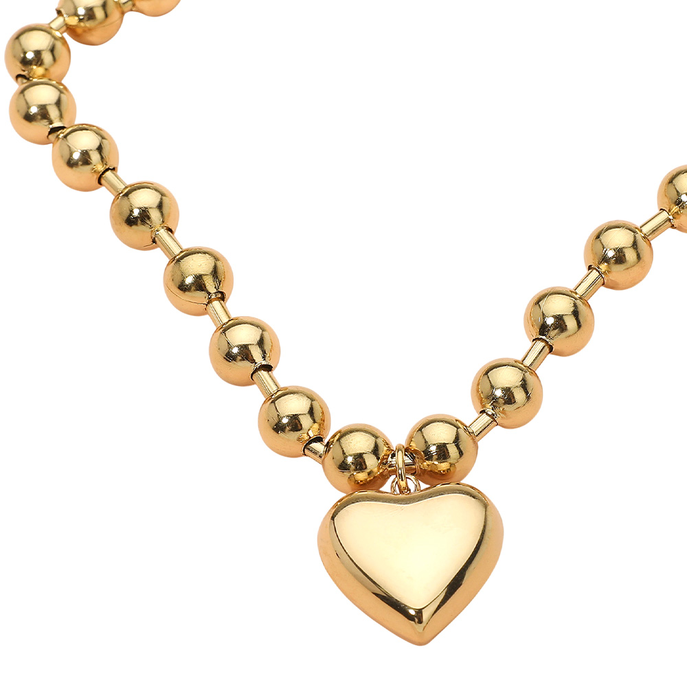 Details • Necklace Size : 18.5" + 2.25" L • Decor Size : 1.4" L • This beaded chain necklace features a bold heart pendant suspended from polished spherical links. A romantic yet modern piece, it’s perfect for adding charm and personality to any outfit. Wear it solo as a statement or layer it for a trend-forward look. • Stainless Steel