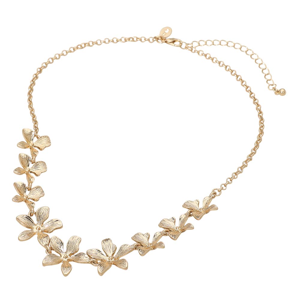 • Statement necklace designed with linked floral accents and an adjustable chain for versatile styling. A graceful accessory ideal for everyday wear, special occasions, or gifting, adding a nature inspired touch to dresses, blouses, and layered looks with effortless elegance.