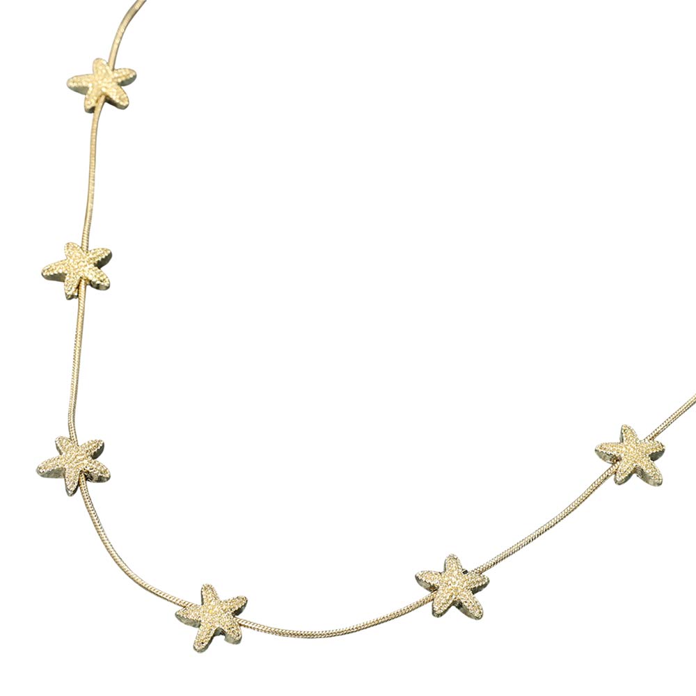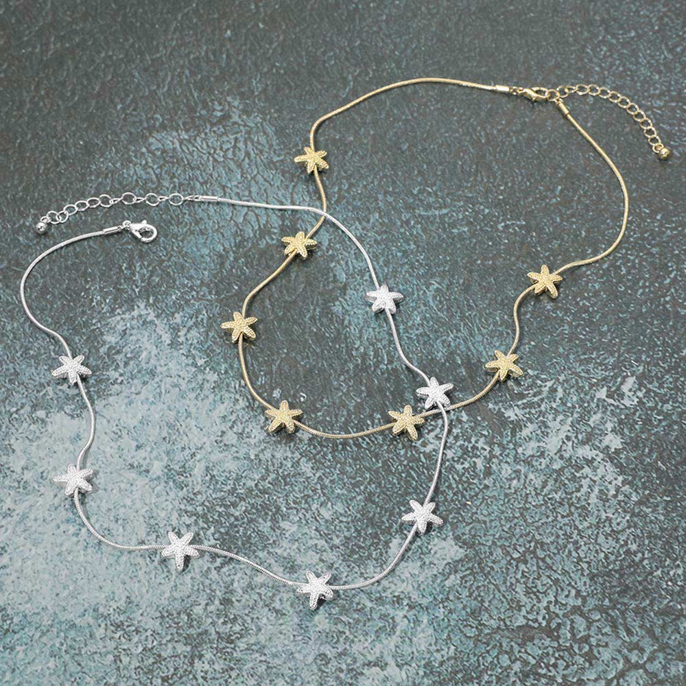 Details • Necklace Size : 17" + 2.3" L • Decor Size : 0.5" L • This starfish charm station necklace features evenly spaced star accents along a sleek chain with an adjustable length for a comfortable fit. Designed for effortless layering or wearing alone, it adds a playful yet polished touch to everyday outfits, gifting, vacation styling, and boutique jewelry collections. • Lead and Nickel Compliant