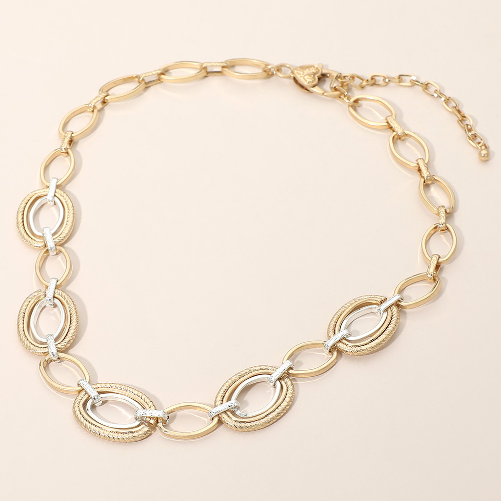 Two Tone Metal Interlinked Oval Chain Necklace