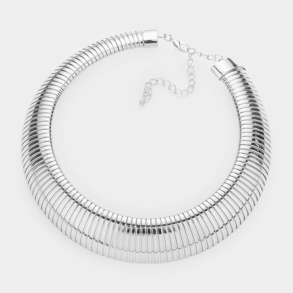 Silver Dipped Stone Paved Open Heart Pendant Snake Chain Layered Necklace