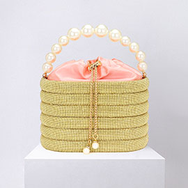 Double Layered Pearl Charm Drop Cuff Bracelet