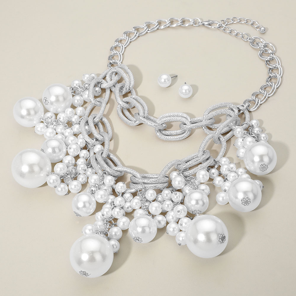 Bold Chunky Pearl Beaded Statement Necklace Bold Chunky Pearl Beaded Statement Necklace