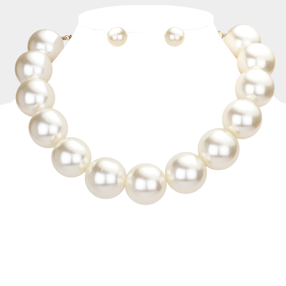 3PCS - Pearl Heart Pendant 3-Row Choker Necklace Jewelry Set