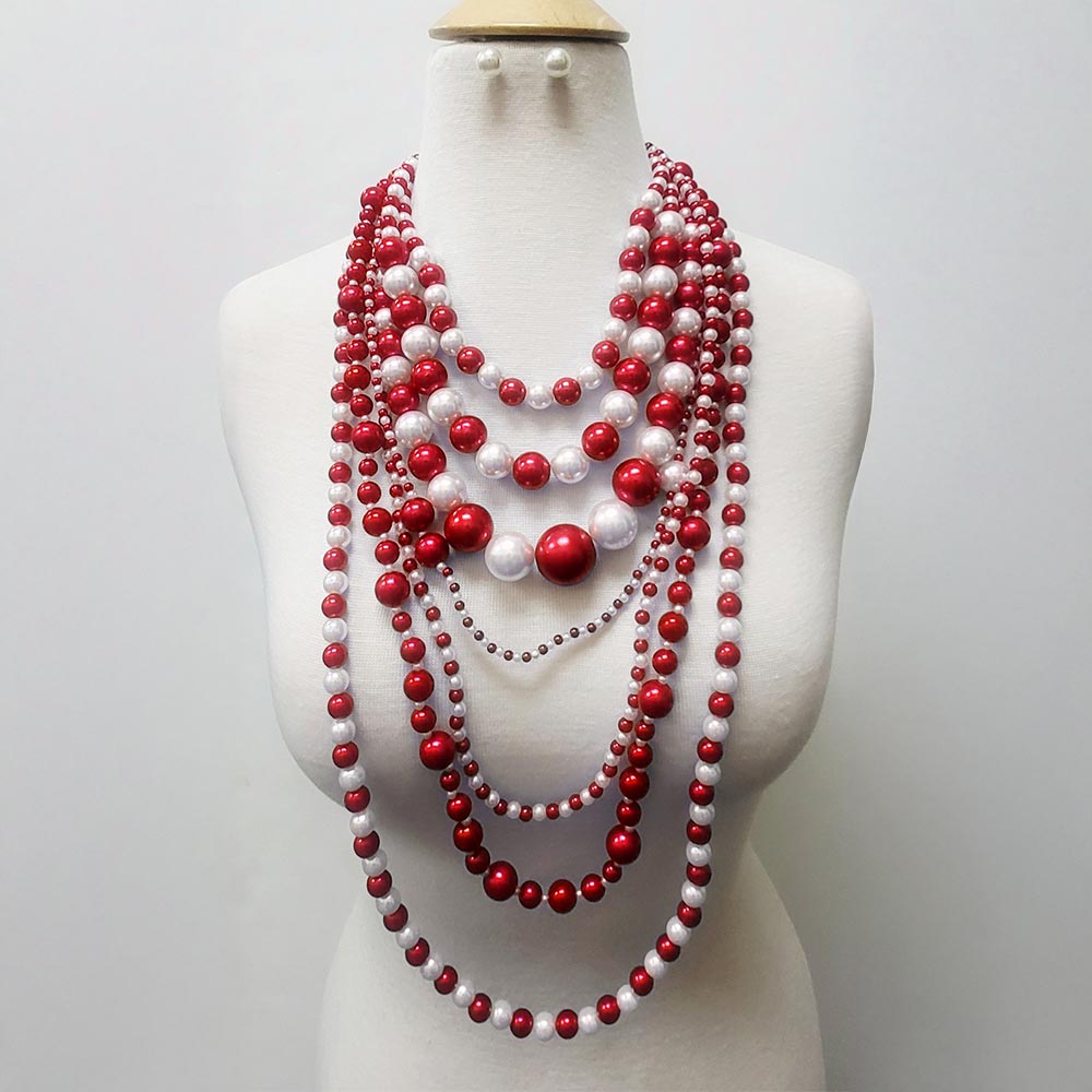 Details • Necklace Size : 18" + 3" L • Decor Size : 10" L • Earrings Size : 0.5" L • Make a bold impression with this multi-layer beaded necklace and earring set. Ideal for themed events, costume styling, or standout fashion moments with a fun and glamorous twist. • Lead and Nickel Compliant